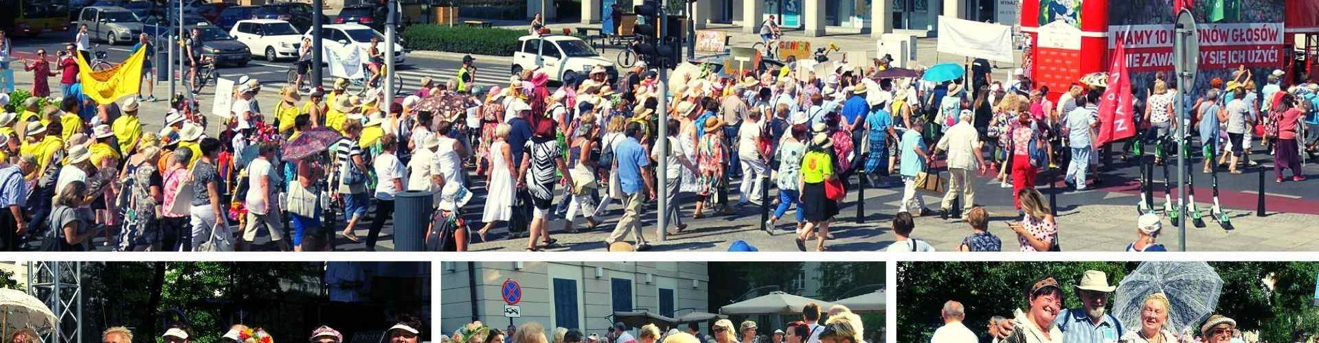 Roztańczony autobus prowadził za sobą kolorowy, niekończący się tłum. Jak tam była energia, jaka moc i jaka radość życia, optymizm i zadowolenie. Kiedy doszłam na miejsce zbiórki, gdzie wskoczyłam na ten autobus bez dachu myślałam, że pomyliłam imprezy i jestem nie na paradzie seniorów, a na Juwenaliach albo zlocie młodzieży. Przeważały oczywiście kobiety, ale było też co nie co panów. 15 000 osób szło radosnym krokiem, machając przechodniom. Bez podziałów, bez nienawiści, bez barier, bez wygrażania komukolwiek za przekonania, bez krzyży, bez orderów za walki, bez skandowania nienawistnych haseł. Wszyscy śpiewali stare szlagiery, cieszyli się życiem i pokazywali to bez obowiązującej dzisiaj gburowatości. Patrzyłam na ten widok z góry i miałam nieodpartą myśl, że nasze wnuki mają farta, że takie babcie i dziadkowie są jeszcze na świecie! Po godzinie marszu (ja sunęłam majestatycznie na dachu) dotarliśmy do miasteczka Uniwersytetu Warszawskiego i tam się zaczęła zabawa i feta. Kiełbaski, grochówka, pierogi zjednoczyły nieznanych sobie wcześniej ludzi przy drewnianych stołach.